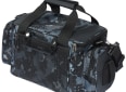 Větší vláčecí taška s popruhem přes rameno, která obsahuje čtyři větší krabičky na nástrahy.