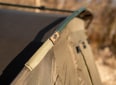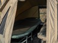 Přístřešek trubkové konstrukce, která se skládá ze tří žeber a o výztuhu se starají rozpěrné teleskopické tyče. Na tento bivak, byl použit vodě odolný materiál 5 000mm HH, té nejvyšší kvality, který je 100% nepromokavý a máme ho prověřený u řady našich úspěšných modelů. Páskou podlepené švy a ukotvení na zavrtávací kolíky, které jsou v ceně přístřešku. Bivak je vybaven větracím systémem jak v přední části, tak v zadní části najdete jedno větší ventilační okno, které zajistí maximální odvětrání. Přední vchodová část má tři výměnné panely na suchý zip, celo zakrytá, slída nebo moskytiéra. Součástí bivaku je přepravní nylonová taška.