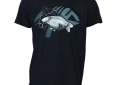 Kvalitní tričko v tmavě modré barvě s designem rybář s úlovkem kapra.